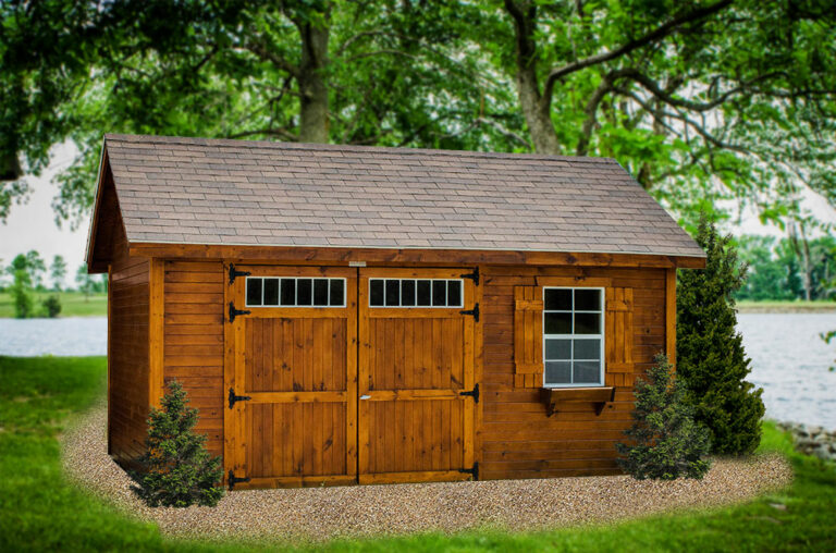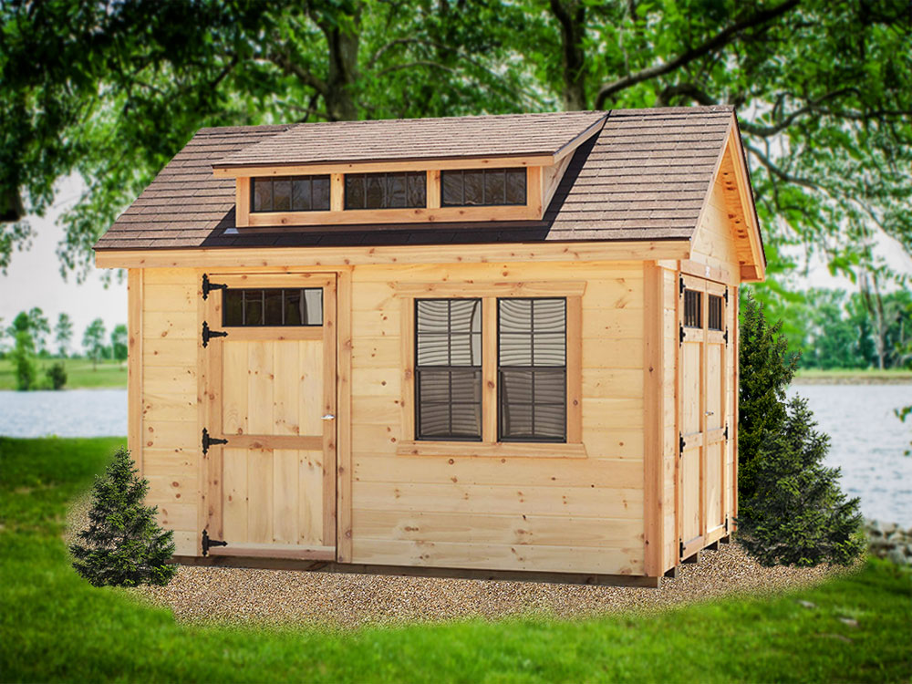 Our skyline features a charming transom dormer, offering additional overhead storage space and plenty of natural lighting. It’s a beautiful addition to any backyard making a perfect workshop or garden shed.